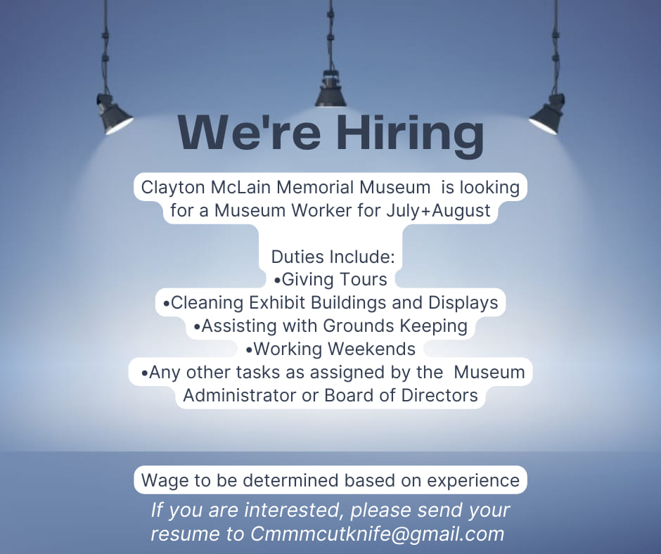 MUSEUM WORKER NEEDED FOR JULY & AUGUST