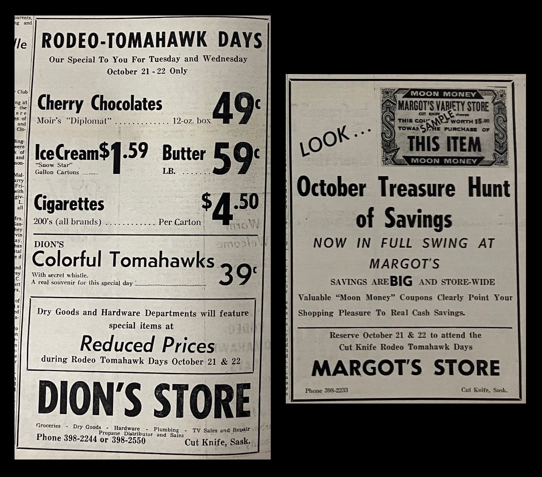 Dion’s Store and Margot’s Store Rodeo-Tomahawk 1969 promotions.
