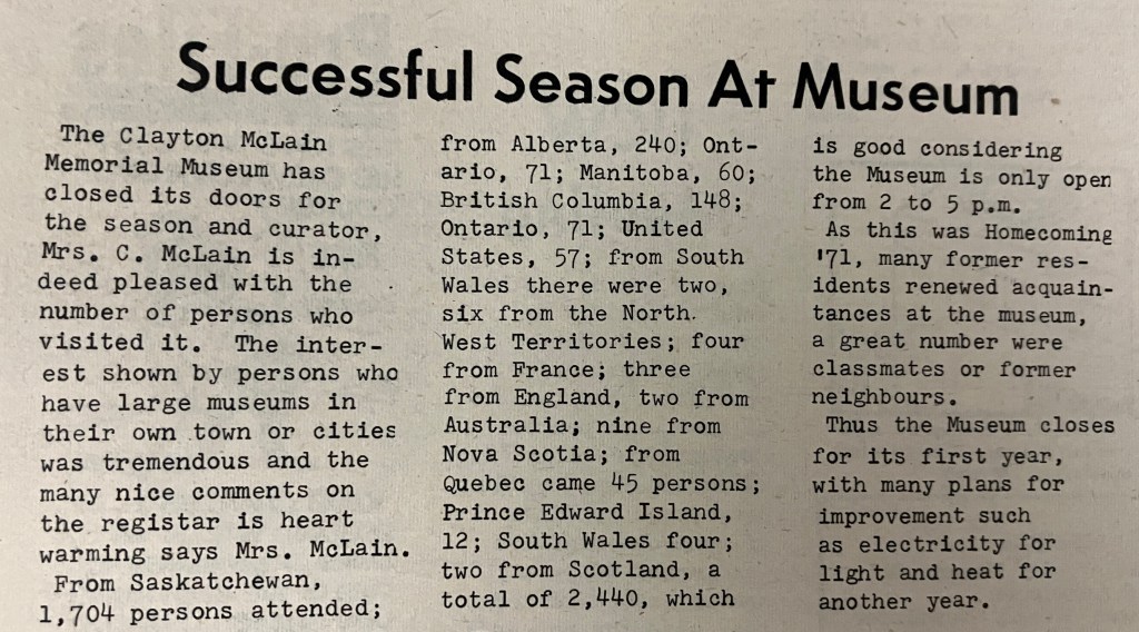 July 1, 2023 was the CMMM’s first Canada Day Open House in years, and it was great fun. It coincided with the Town of Cut Knife’s Canada Day celebrations, and Tomahawk Park was buzzing with people, bouncy castles, quilts, and a horse-drawn wagon. More than 90 registered visitors wandered through the CMMM heritage buildings with Board members, Staff, and Volunteers onsite to assist.